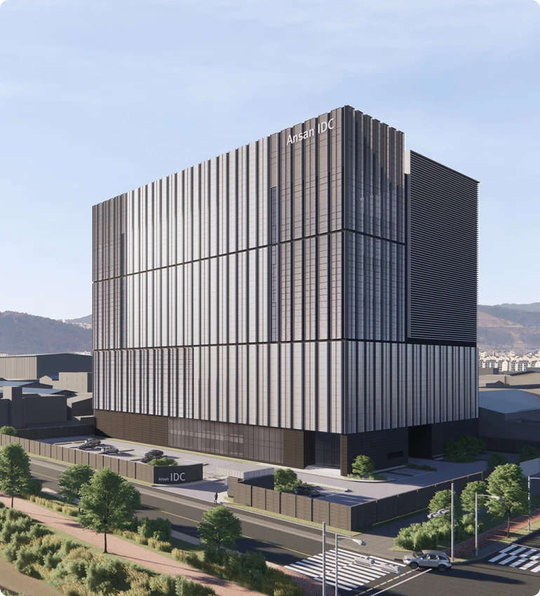 인입전력 40MW, IT용량 27MW의 하이퍼스케일 IDC 개발사업. Cloud 및 AI-ready 데이터센터로 최고 수준의 SLA, 이중화 설계, 고신뢰 기반 전력망 및 냉각시스템을 갖추고 있음.